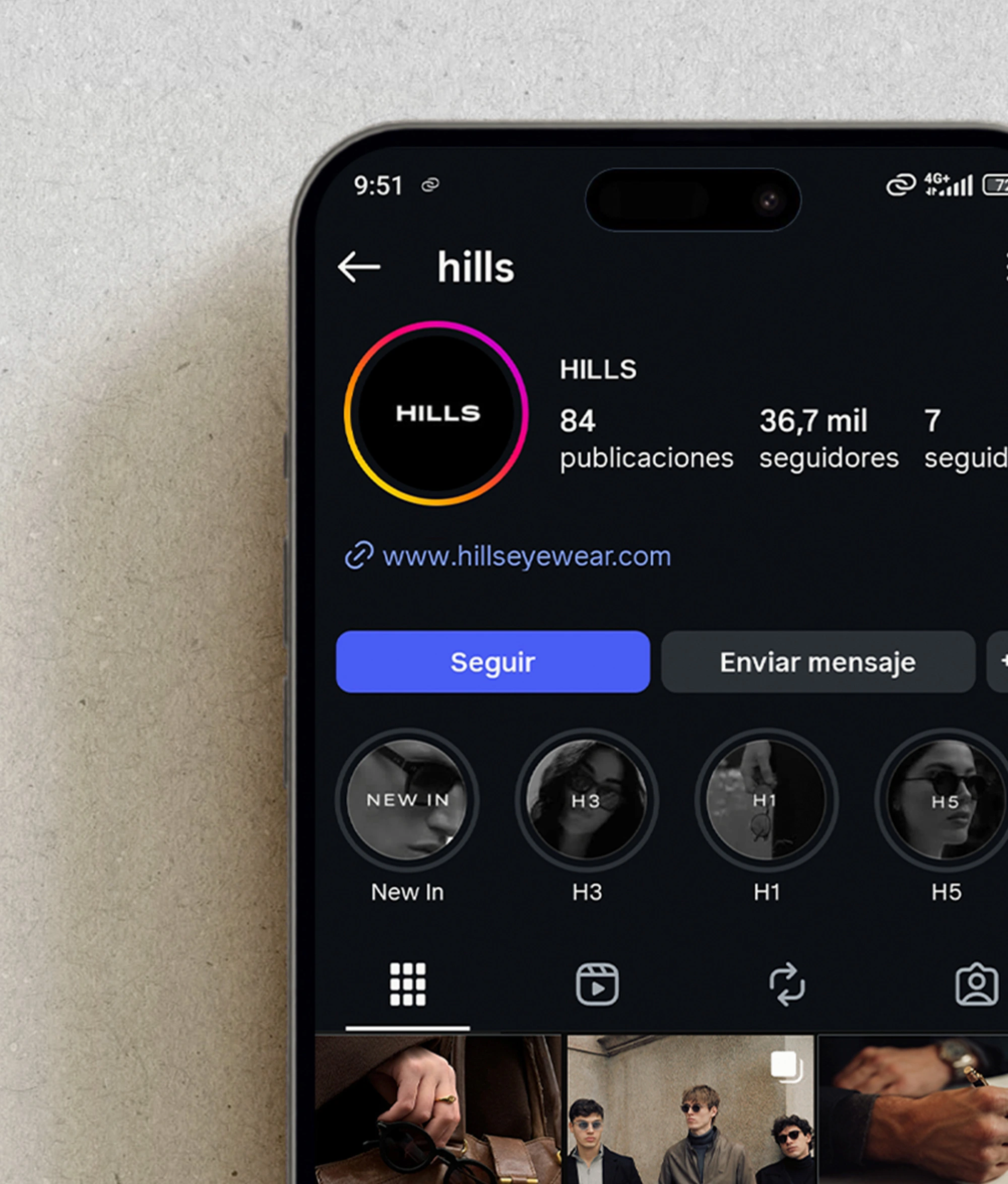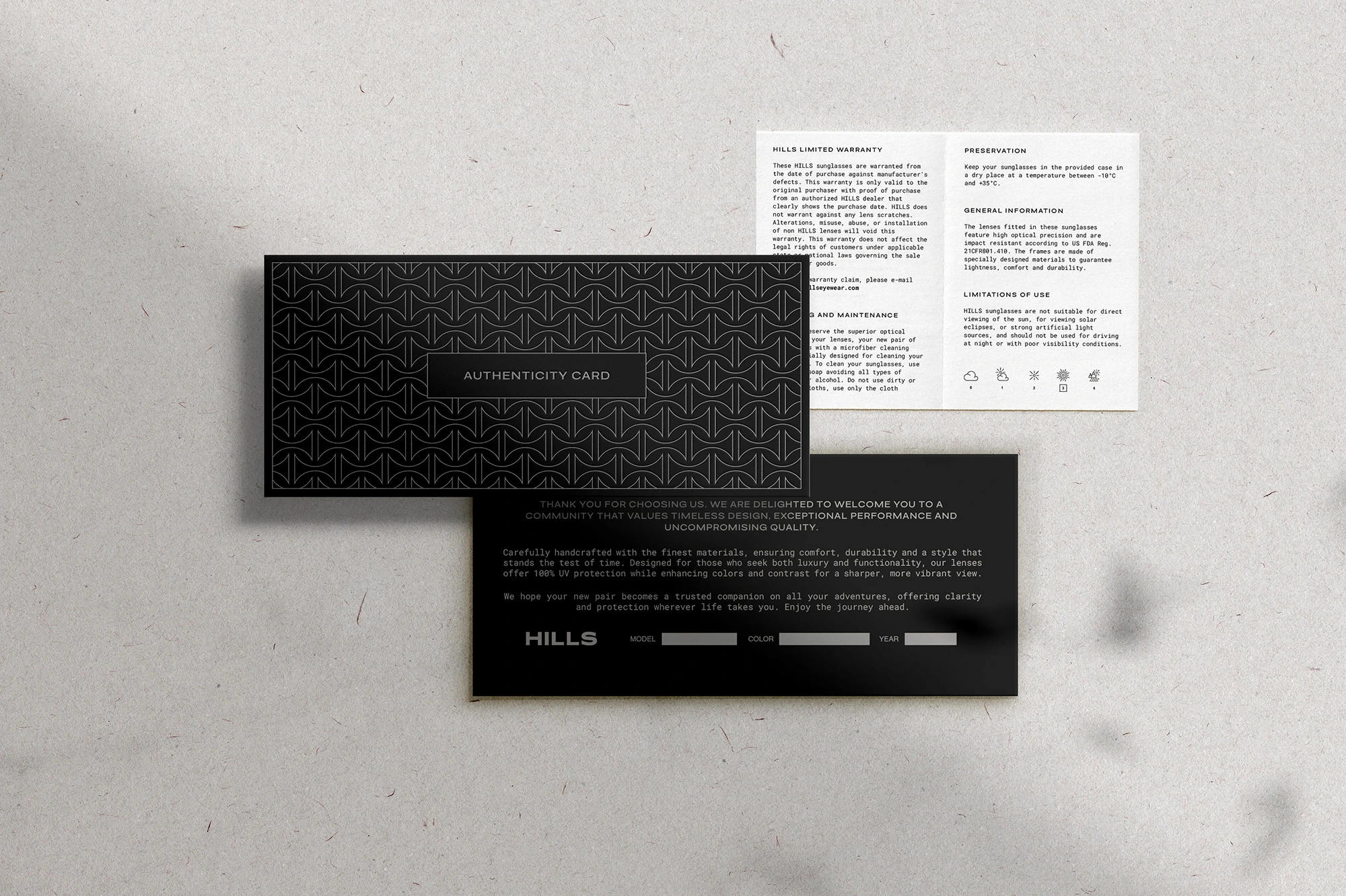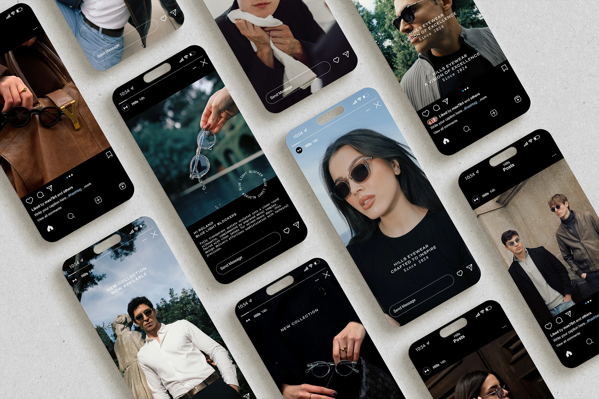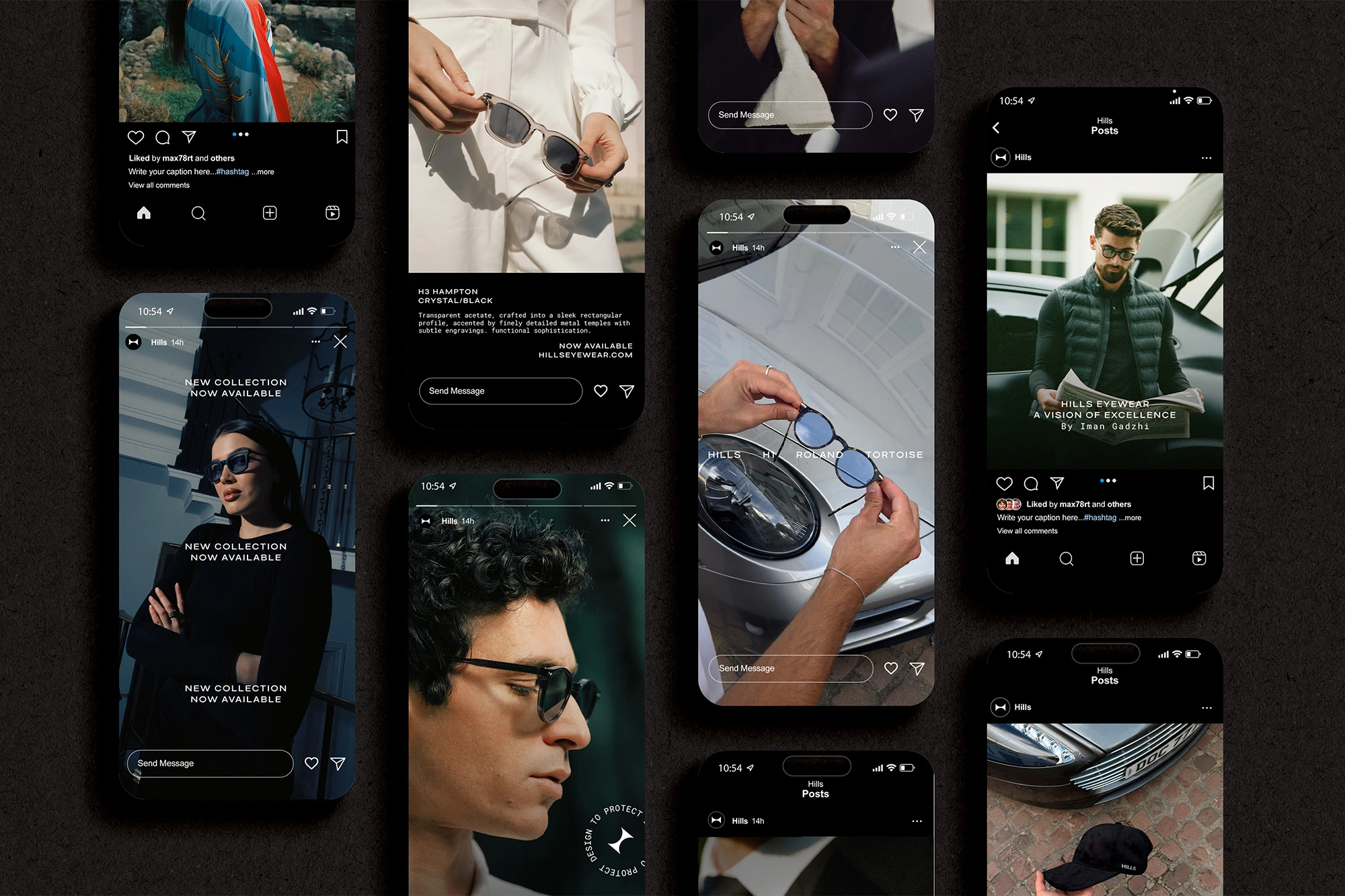 Hills Eyewear es una marca de gafas concebida para un perfil exigente, sobrio y con una clara ambición estética. Cuando el cliente acudió a mí, la marca contaba únicamente con un logotipo/isotipo y una idea definida: construir una firma aspiracional orientada a un público con poder adquisitivo y gusto por lo clásico.